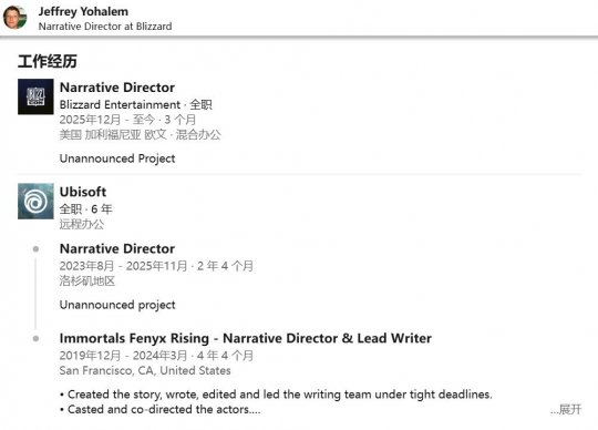 在2026年8月至2025年11月期间,约哈勒姆在育碧参与了一个尚未公布的项目。目前该项目命运未卜,尚不清楚会否继续推进或移交他人。他并未公开离职的具体原因,但确认已于去年12月同期加入暴雪娱乐。