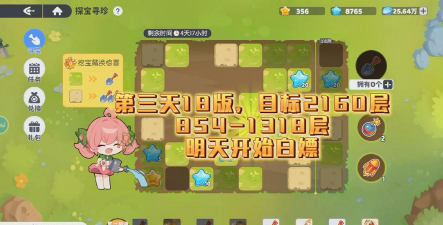 路线的规划也是很重要,有条件的话可以先用小号去探路,毕竟如果大家的地图相同跟着最优的路线走,就能节省很多的铲子。可以先朝着左前方前进,遇到石头阻碍,可以用道具炸开,不要浪费次数,道具可能会隐藏在宝箱里面,草地里的需要一铲子获取,宝箱里面的就可以直接拿。在奖励兑换方面,蓝色星星,还有金色星星就可以直接保留到下次活动,并不需要着急去兑换,蓝星商店可以按照需求去兑换。平民玩家就可以通过800层金史莱姆作为目标,每天坚持领取免费的铲子。