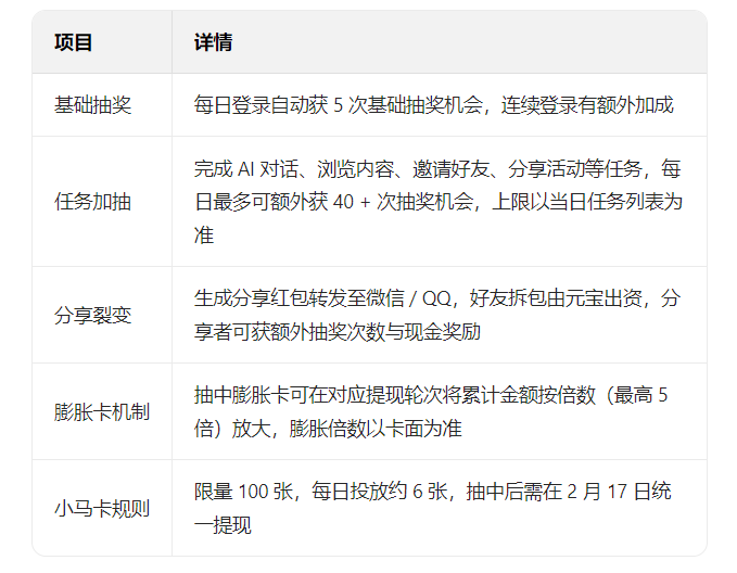 参与门槛:元宝 App 需更新至 2.55.0 及以上版本;支持 / QQ 账号登录,提现需实名认证,无额外门槛。
