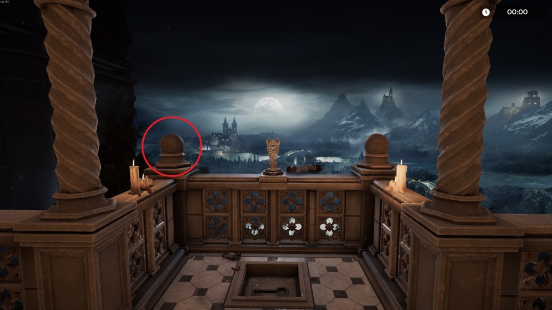 8 -旋转阳台上的左侧圆形石头,直到找到标记。