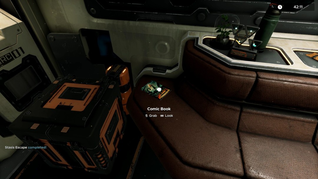 当你在逃生过程中阅读一本漫画书时,即可解锁此成就。你可以在“迷失星舰”主题的休眠舱中找到一本。在这个房间里,有一本漫画书放在长椅上。只需拿起它,仔细查看并与其互动。一旦你翻开它,成就便会立即解锁。