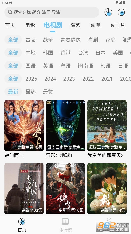 1、首页,会为大家展示最全资源播放类型,大家可按照剧集不同分类去查看。