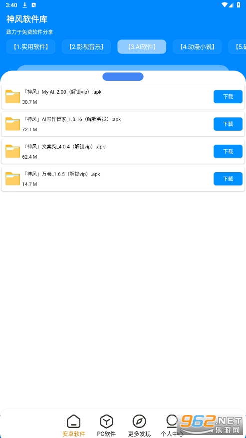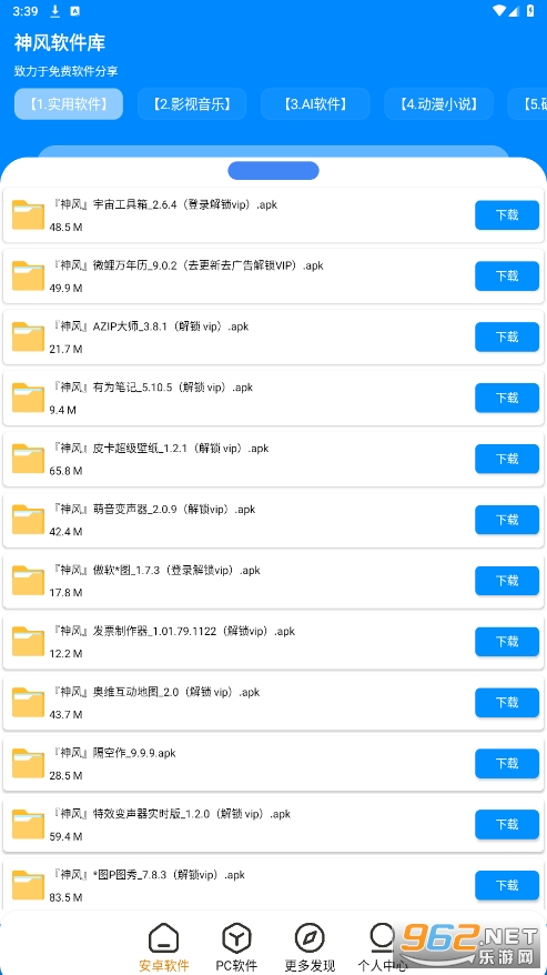 1.用户界面简洁清晰,操作便捷,用户可以轻松找到所需软件。