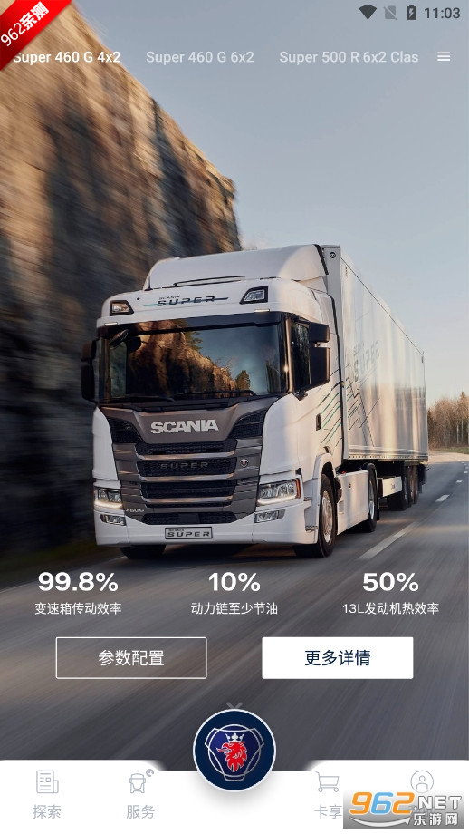 App首页即可查询斯堪尼亚中国在售车型的详细配置信息与图片,祝您轻松选车。