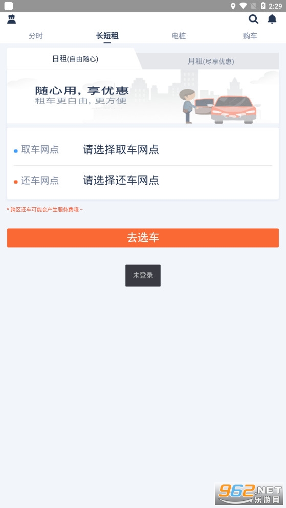 一款线上租车应用,需要自己驾车出行的人可以在线寻找合适的车型,