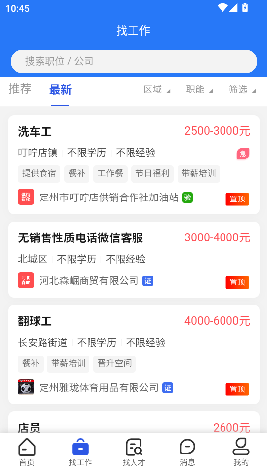职位动态更新:每日新增大量本地岗位,涵盖工厂、门店、技术岗等,满足“不离家就业”需求。