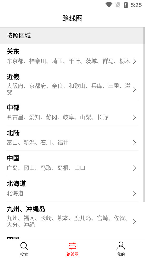 日本全境10大区域:关东 中部 北陆 近畿 四国 九州 北海道 东北 冲绳岛