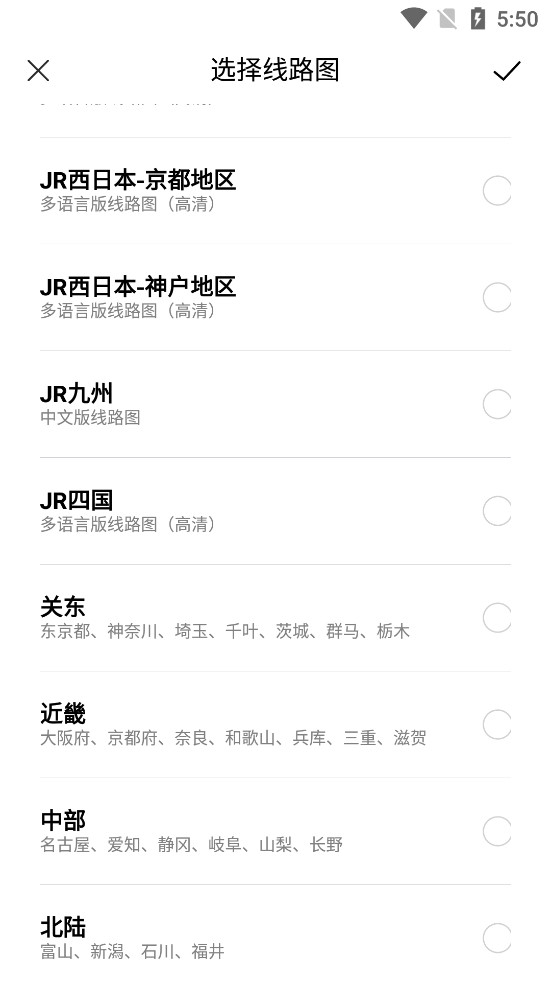 进入软件后可以点击右上角的线路图来查看地铁、巴士等各种不同地方交通工具的线路图