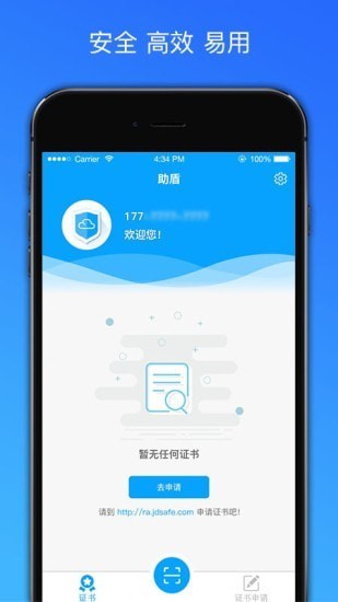 提供了一种在互联网上身份验证的方式,是用来标志和证明网络通信双方身份的数字信息文件;方便的对证书进行管理,包括证书使用日志和证书授权等;移动端与CA电子认证应用的深度融合,结合数字证书加密、存储等技术优势,为身份认证保驾护航。