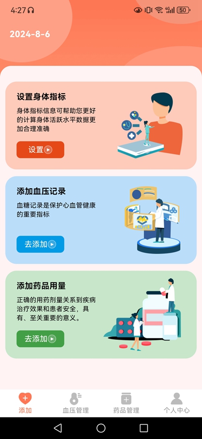 点击【血压管理】-【添加】