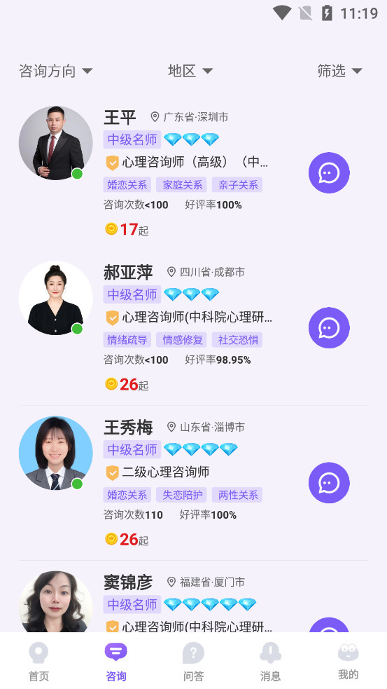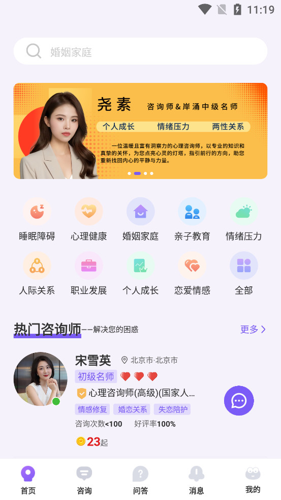 【心理咨询】心理咨询师等专业人士全天在线,抑郁焦虑、情绪压力、职场发展、失眠、社交恐惧、自卑等各类问题,多种选择,助您排忧减压;