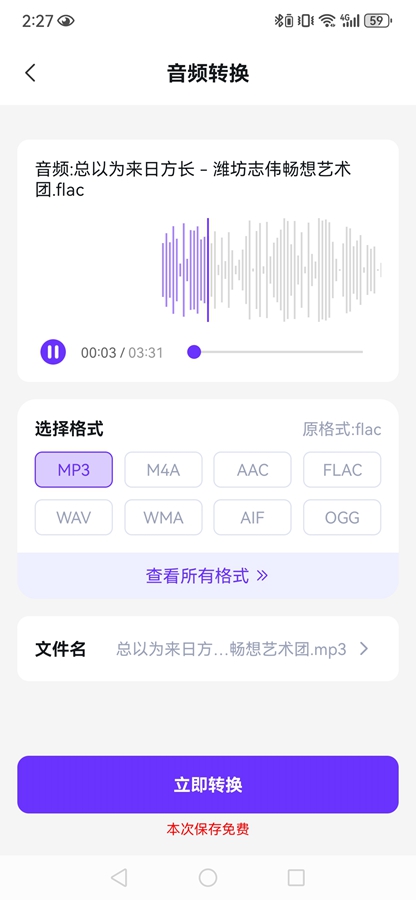 然后选择自己想要转换的音频,点击下一步,进入转换界面,选择需要转换后的格式,然后点击【立即转换】即可进行转换