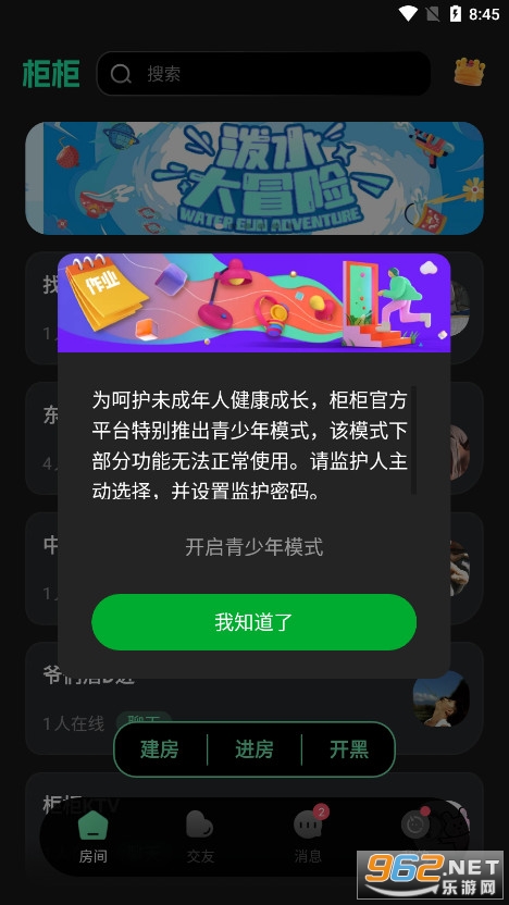 通过【创建房间】【搜索房间】【私密房间】等功能用声音,邂逅一群人的狂欢