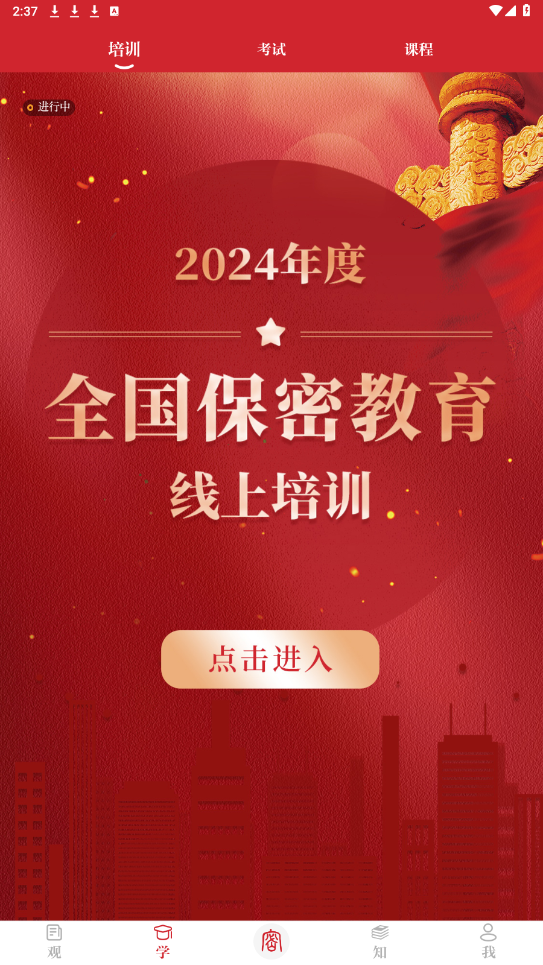 通过中国保密在线网站进入培训系统:点击首页标题图。