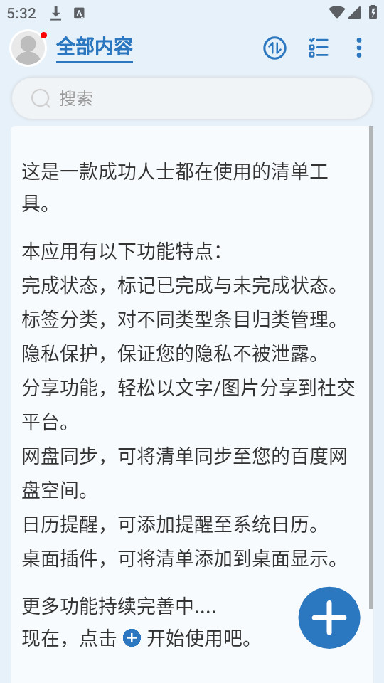 这是一款超好用的待办任务管理应用,帮助您管理待办任务,提升效率,避免遗忘。您可以将它用于工作计划、任务安排、行程安排、要点记录、购物清单、愿望清单等等场景,是您工作生活的好帮手。