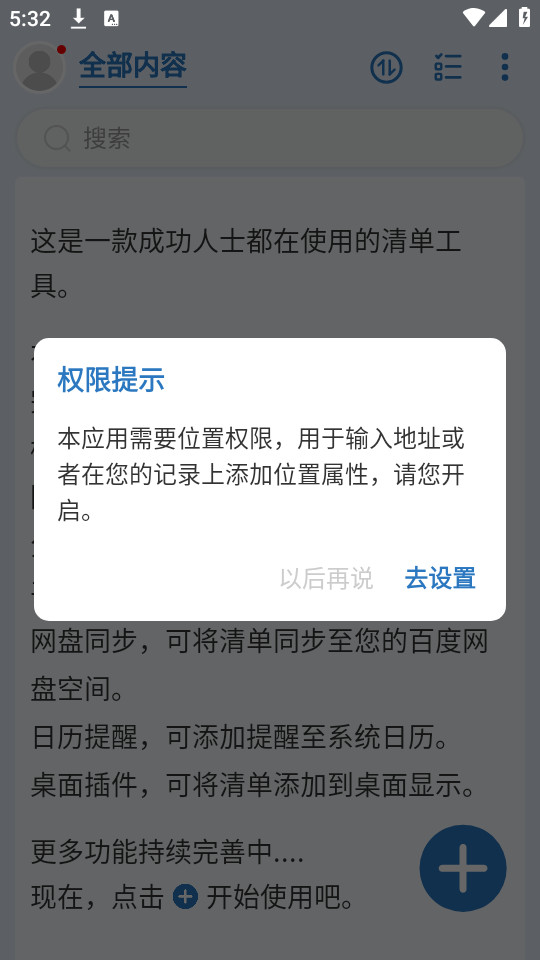 1.下载待办任务清单app,赋予权限之后,点击【+】添加清单任务