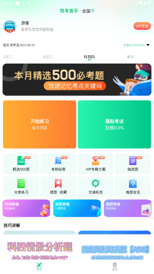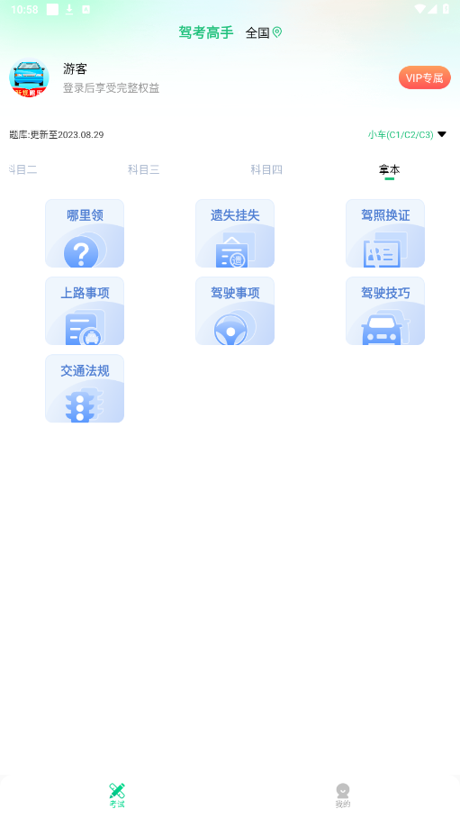还可以选择科目一或者科目四,进行刷题练习,模拟考试等