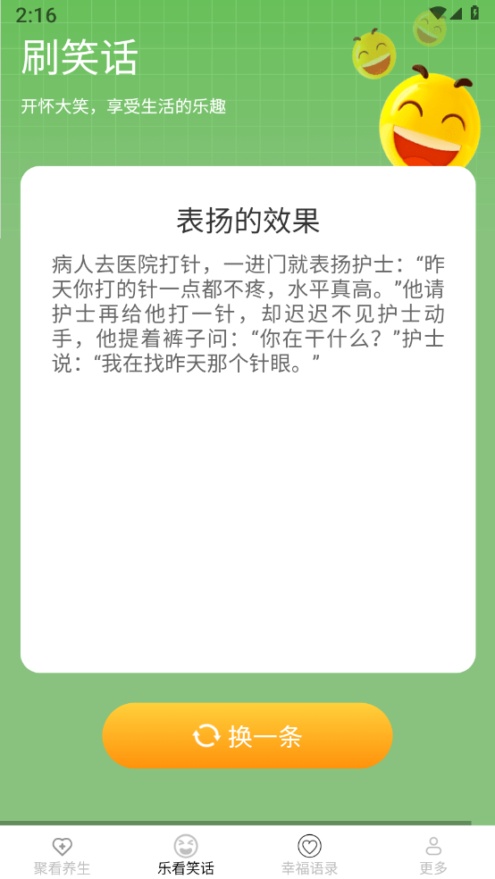 哈皮聚看是一款非常趣味十足的笑话软件,拥有数量众多的笑话和段子,覆盖了搞笑、情感、生活等多个方面,满足用户需求。提供了非常优秀的夜间模式,利用这个模式让用户在夜间阅读时更加舒适。并且用户可以通过搜索框快速找到感兴趣的内容,实时享受到高效便捷的服务。感兴趣的朋友快来下载体验吧!