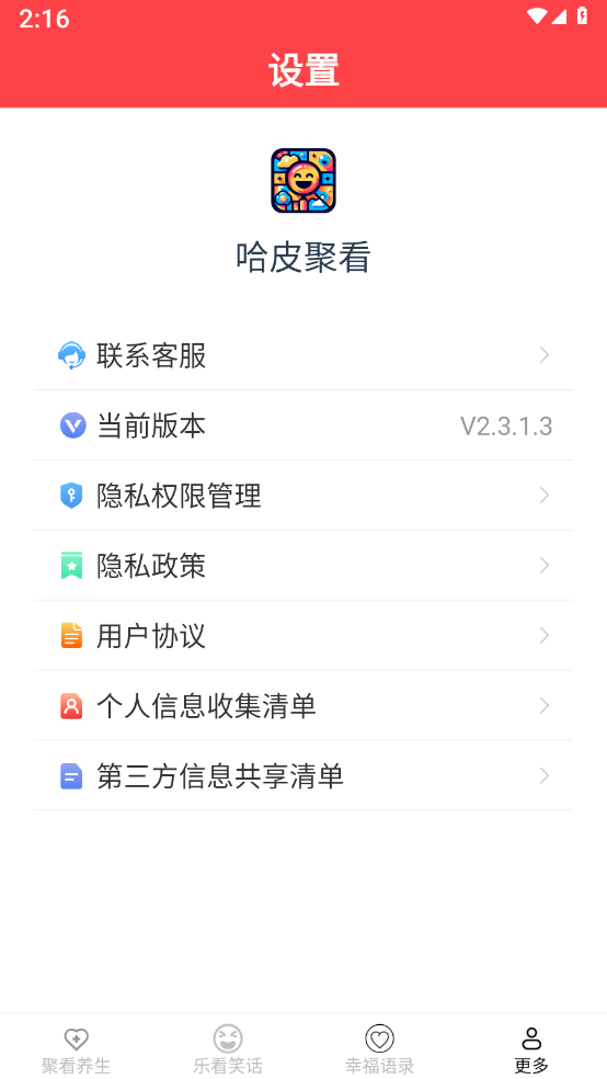 《哈皮聚看》是一款集学习与娱乐于一体的多功能应用。用户不仅可以在这里学习到各类知识,还能轻松浏览各类笑话段子,为生活增添乐趣。平台内容丰富,包括养生知识和幸福语录,旨在帮助用户提升生活质量,收获更多欢乐。无论是想要充实自己的知识储备,还是想要放松心情,哈皮聚看都是您的不二之选。