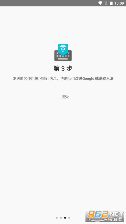 4、发送匿名使用情况统计信息,协助我们改进Google韩语输入法,这里我们选择接受。