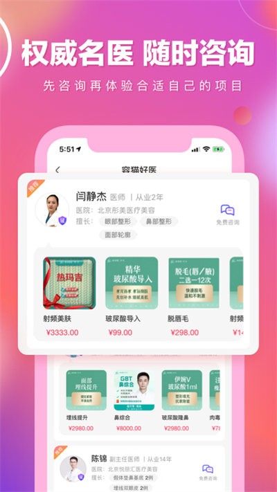 【变美服务更安心】数千家正规医美机构入驻,数千名权威认证医生在线,专业管家1对1咨询服务,帮助用户解决变美疑惑