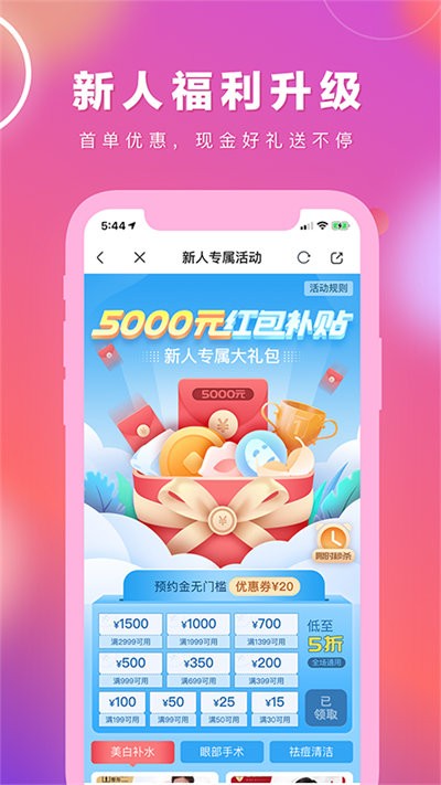 【变美补贴-新人礼包】新用户注册即可领取5000元红包补贴,低至5折,全场通用