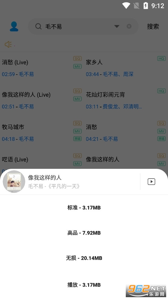3、支持无损、标准以及高品和MV等,下载速度快;