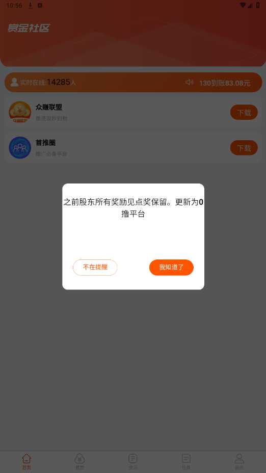 赏金社区app是一款可以每天做任务赚赏金的手机平台,这里的任务包括但不限于看广告,邀请新人,试玩游戏,点赞评论等,只需要接受任务,完成任务就可以累积赏金收益,提现到账快。