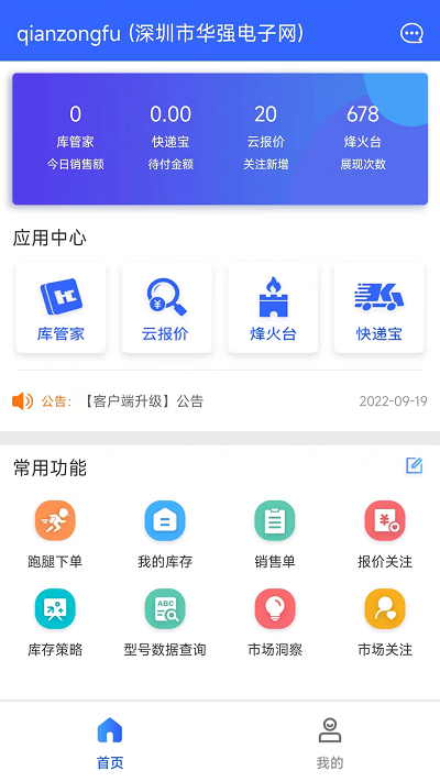 可以帮助商家管理自己的业务,软件主要提供库管家、烽火台、快递宝和云报价四个功能模块,打开库管家就可以进入门店管理进销存数据,可以在添加添加自己门店销售的商品,将采购的商品数据添加的软件管理,将出售的商品明细记录到表单,进销存数据全部在软件显示,为商家提供更方便的业务管理方案,管理门店数据更加方便,如有库存管理、销售管理、收支查询、客户询价等,自行选择常用功能并添加在首页;通过烽火台功能就可以统计本地的经营数据,可以在软件查看门店流量情况,可以查看展现型号、展现次数、访客数、潜在询盘次数、潜在询盘人数等信息,也提供流量概况、库存策略、市场洞察、市场查询、市场关注等功能,为用户分析市场提供数据参考!便捷了解访客数、询问次数、商品数据等;根据商品、销售、采购、仓库、询价等分类展示了各种业务工具,在线可以便捷的查看销售明细、采购明细、出入库单据、供应商信息等,方便商家的查看。而通过该软件中的快速宝之需要将下单信息发送给物流公司,再等待揽件即可,同时发件越多,快递费可享受的折扣力度越大,并还支持多家快递费用,月底统一进行结算,非常的方便。因此可以说华强云平台通过了先进的互联网技术,轻松的推动了电子行业交易方式变革,增强企业可持续化发展能力和行业竞争力。需要的小伙伴快来2265下载使用吧!