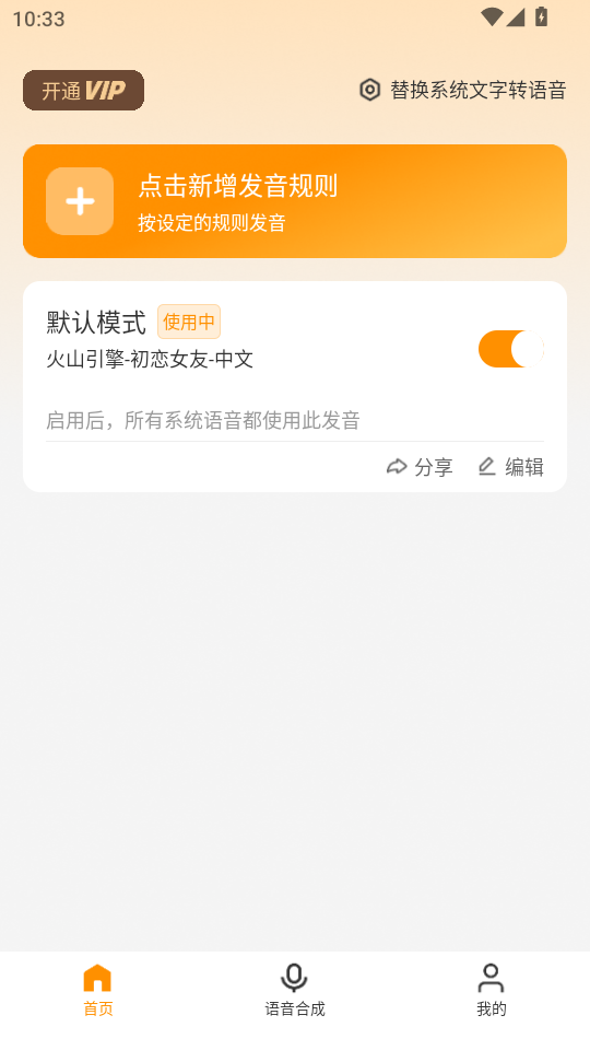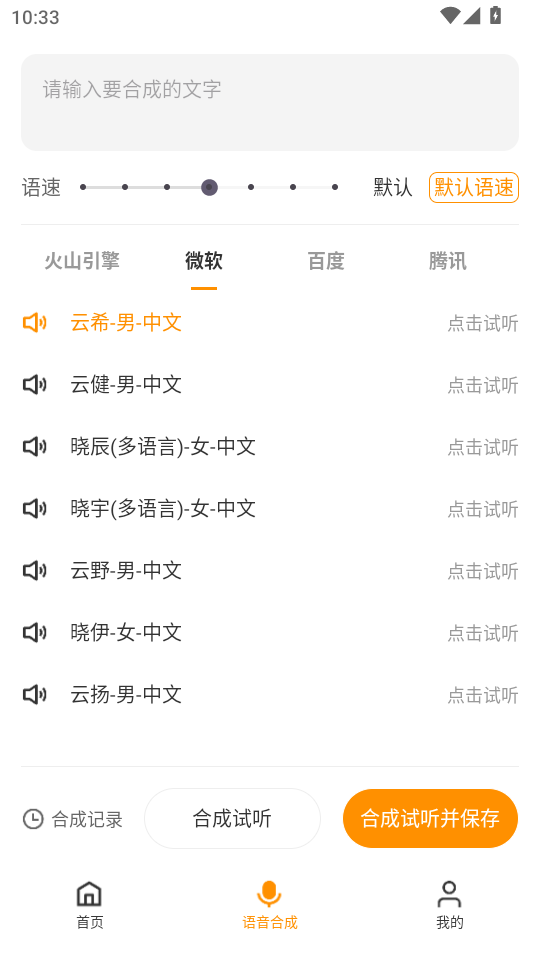 参数深度自定义:支持语速、音量精细调节,可保存为音频文件或直接设置为系统默认语音。