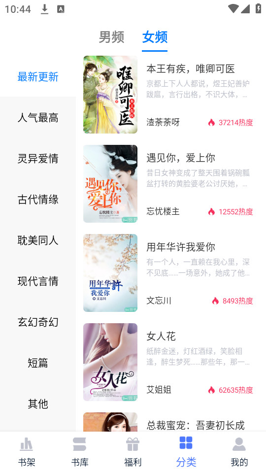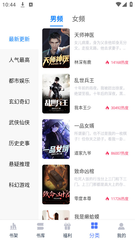 【男女频道】特色男、女频道,有适合专属于男生、女生的不同阅读空间。