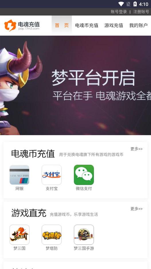 《电魂梦平台》是一款一站式游戏平台,登录一次即可畅玩电魂旗下所有游戏,包括梦三国OL和梦塔防等。手机版轻巧便捷,智能更新,多账号一键切换,更提供资讯、客服等贴心服务。还在等什么?下载体验流畅的游戏乐趣!