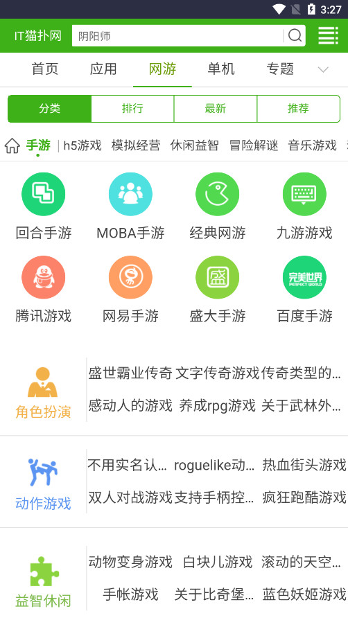 1、打开IT猫扑网app,就像在使用网页版那样,分为了首页、应用、网游、单机、专题等多个不同分类。
