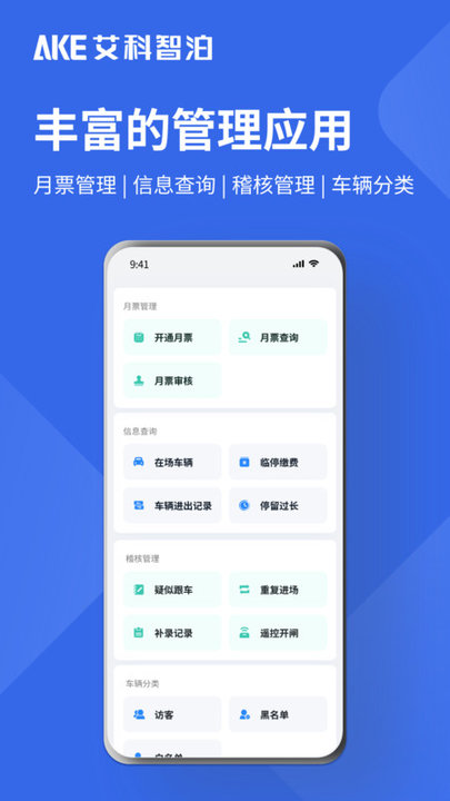 艾联客是“艾科智泊”自研的一款专用于车场管理的应用软件,旨在为用户提供移动便捷化的停车场管理服务,它涵盖了用户日常管理所需的丰富功能,包括月票管理、车辆管理、数据统计分析等,用户只需要通过艾联客APP就能远程搞定停车场日常事务,直观了解车场经营数据,适时作出准确的经营决策,让车场管理从此变得轻松高效!