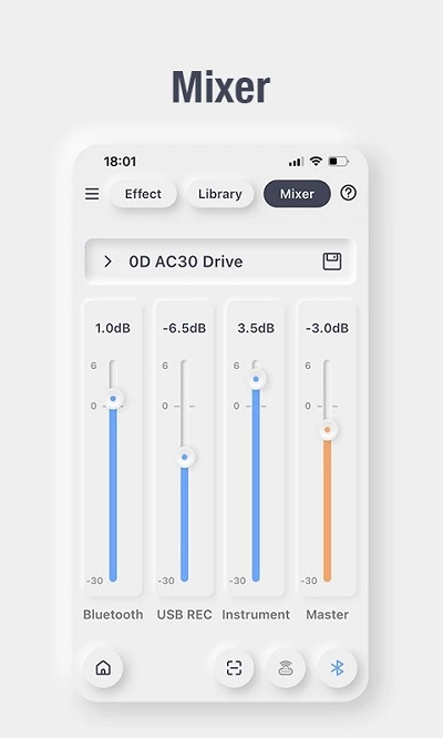 iamp智能吉他音箱移动端app控制软件顾名思义是手机端控制平台,可以通过其手机端进行调音等服务,各种音效类型任你选择,不管什么样的参数都可以,选择蓝牙乐器或者是usb控制,即刻开启调控供功能吧!