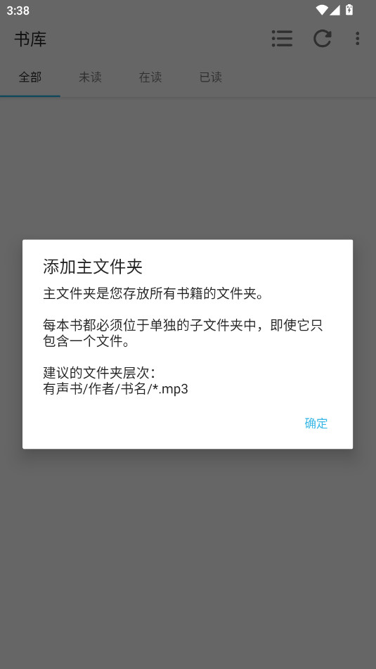 进入app后你需要设置一个文件,所有的听书文件都需要放在这个文件夹中