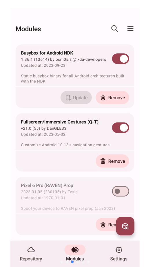 MRepo是Android应用程序,可帮助您管理自己的模块库。每次启动各种模块都是非常方便的,也可以将不需要的模块停用或者下载,无论是联网下载模块还是从本地安装导入模块都是可以的。