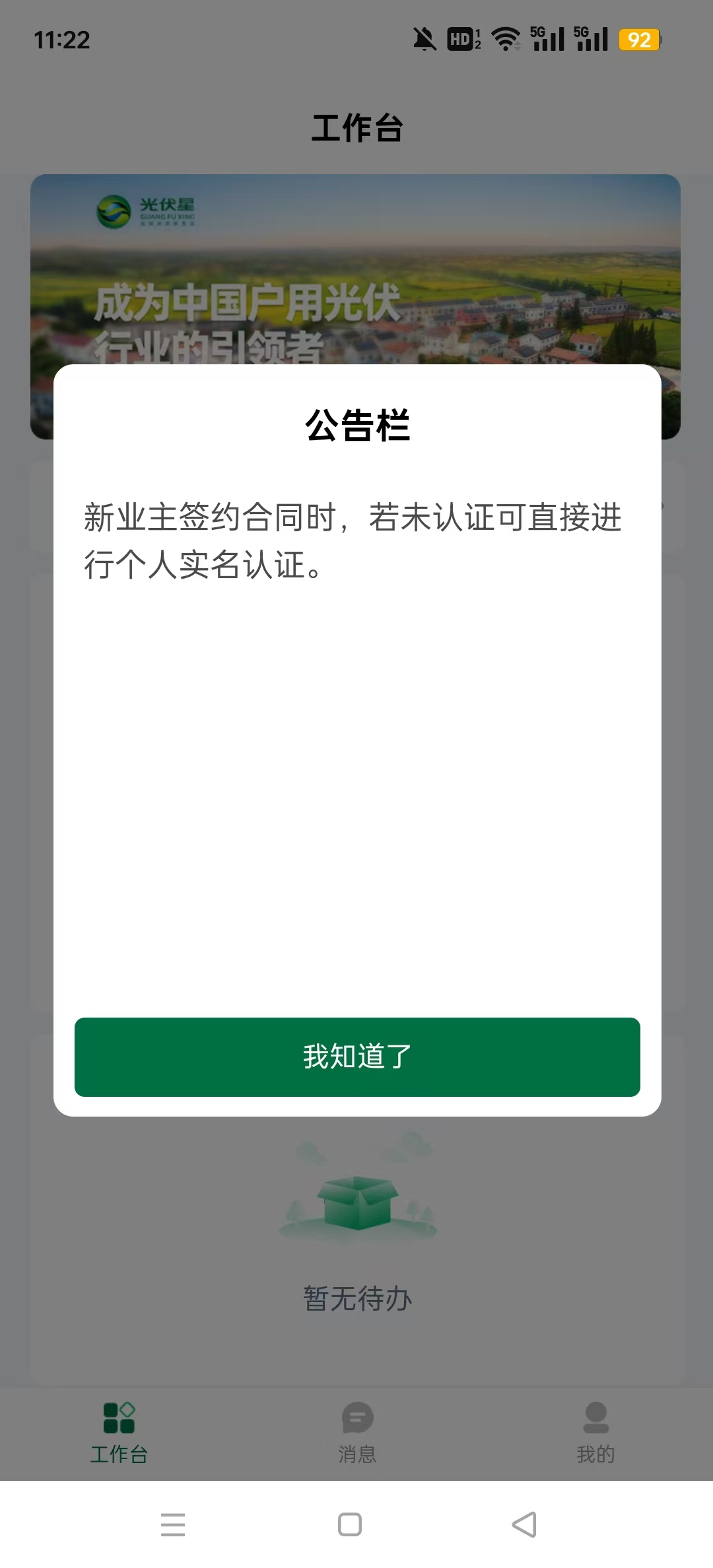 2、来到光伏星绿能管家APP工作台,就你所需要业务功能服务展开操作。