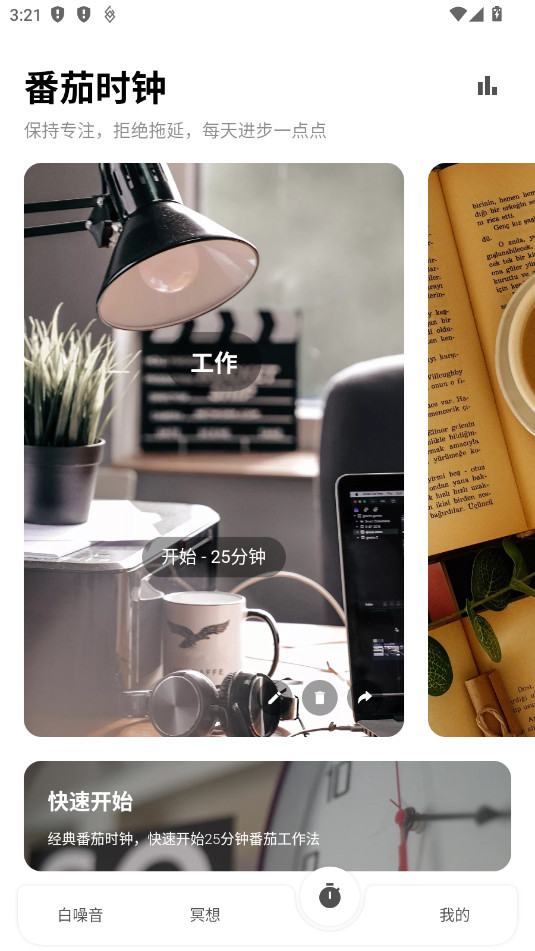 《一念》应用通过其丰富的白噪音库、多样化的呼吸冥想练习以及灵活定制的番茄时钟功能,为用户打造了一个全方位的身心放松与效率提升平台。从自然界的细腻声响到舒缓的音乐旋律,再到科学的专注管理方法,它让每个人都能找到适合自己的方式,享受宁静,提升自我。