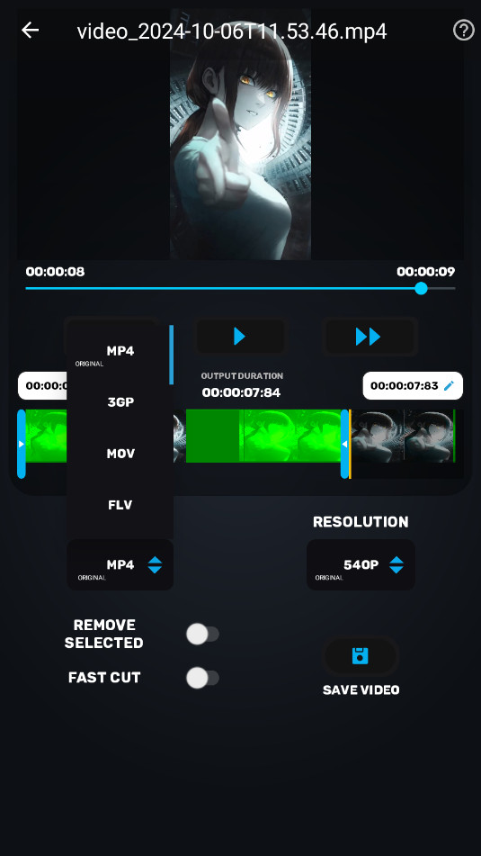 然后就可以进行详细的编辑,更换格式,剪切等功能