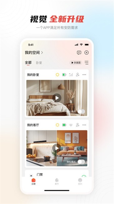 大华云联app最新版本是大华监控配套软件,支持添加监控设备、添加人员,还可以分享权限给家人;可以方便的在手机端实现视频监控、门禁业务、考勤业务等操作,从考勤打卡到监控安全,从在线审批到移动会议,每一个方面都为你深度定制,提升企业效率