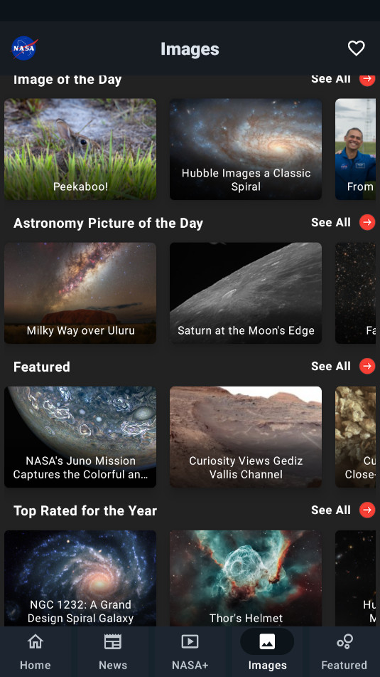 海量图像资源:应用程序内置了超过 21,000 张最新的 NASA 图像,用户可以轻松查看并欣赏这些珍贵的宇宙照片。同时,用户还可以对图像进行评分,并探索所有评分最高的图像,发现更多隐藏的宇宙之美。