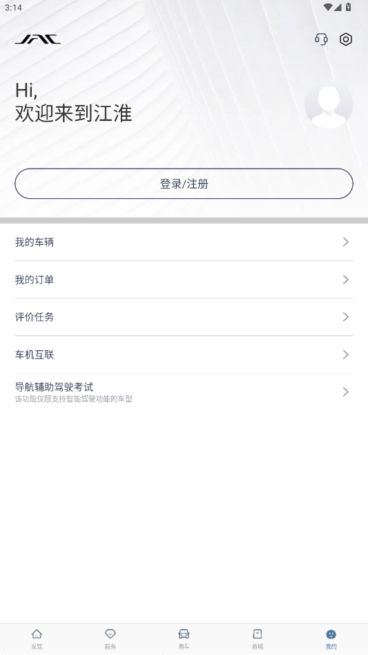 打开江淮瑞风app,首次使用需要登录软件