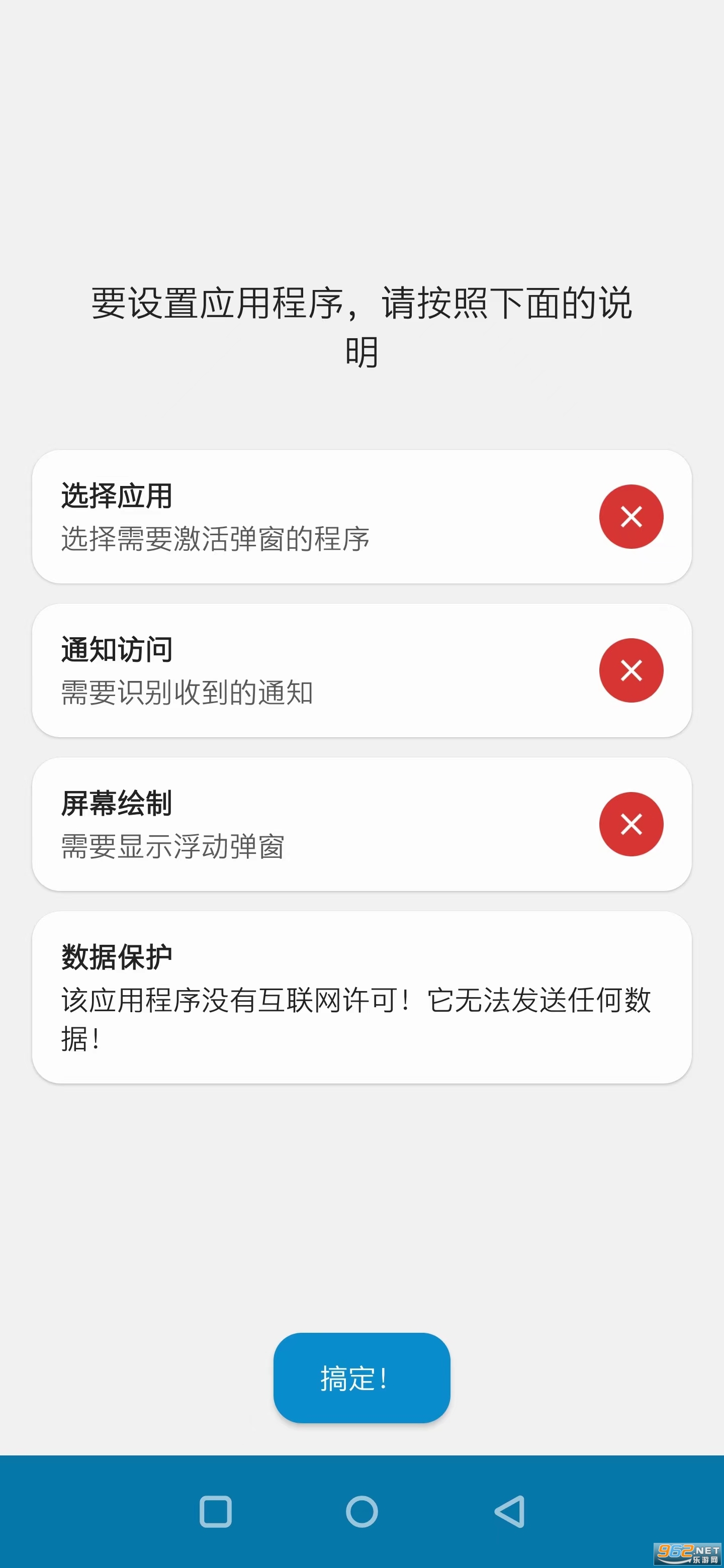 2、第二步:进入该应用以后,软件会根据我们自身手机的情况获得三个权限。