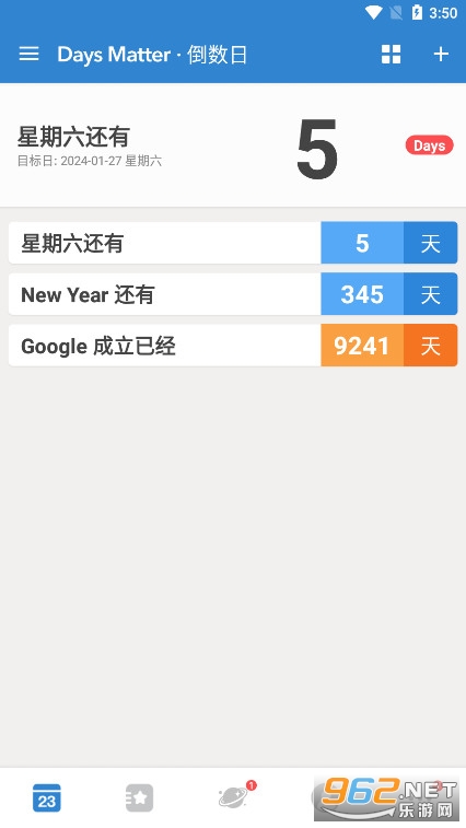 倒数日Days Matter是一个帮你记录生活中重要日子的小工具,例如:恋人生日还有多少天?还信用卡还有多少天?发工资还有多少天?宝宝出生已经多少天?距离世界末日还有多少天……·农历支持:支持从 1901 年至 2049 年的农历日期