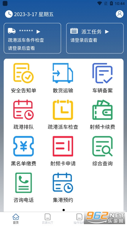 通过填写手机号及验证码可以实现注册用户,注册完成后还需进行个人/车辆信息认证,如果不进行认证只能查看操作指南及通知公告,进行个人/车辆信息认证后可进行散货运输接单、射频卡续费、黑名单缴费、综合查询等功能。