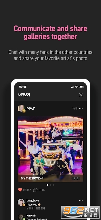 加入在线社区与其他粉丝交谈并分享您最喜欢的艺术家的照片。查看与K-pop艺术家/韩国演员/名人等相关的各种问题和信息。
