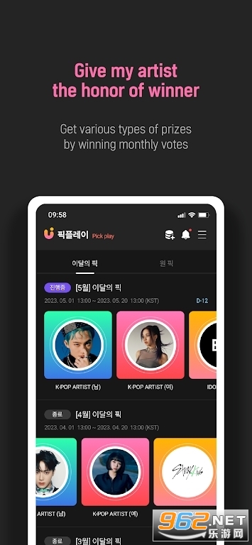给您最喜欢的艺术家赢得一等奖的荣誉。 [Monthly PICK] K-pop 艺人和演员等的每月人气投票。 [1 PICK] 对各种主题进行投票。