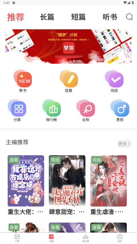 个性化推荐系统:基于您的阅读偏好,智能推荐符合您口味的小说,让每一次打开梦游小说都能发现新惊喜,从此告别书荒。