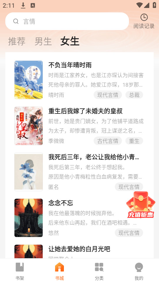 8.分类板块可以直接根据你的喜好选择喜欢的类型的书籍